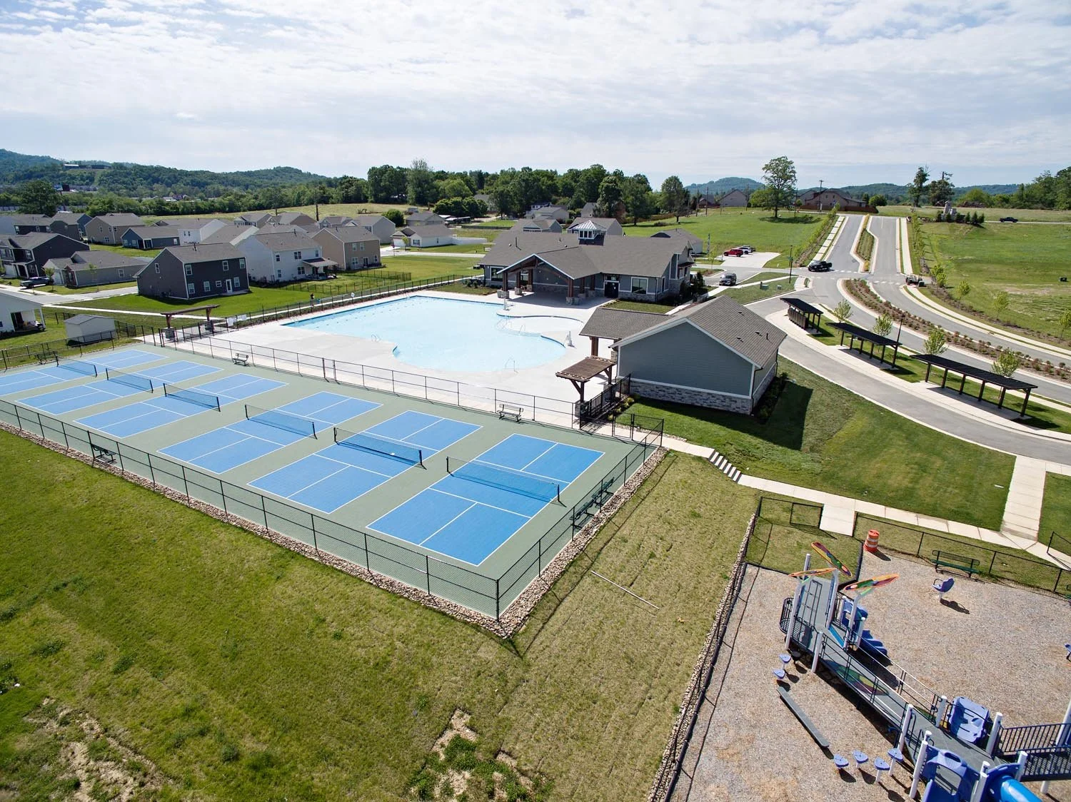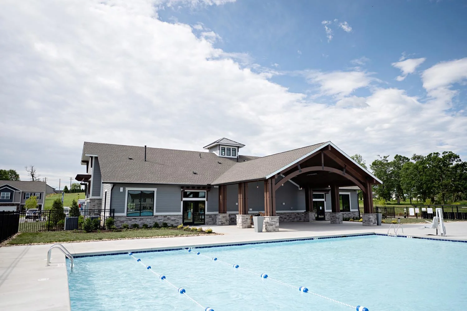 The 5,000 square foot resort style clubhouse features a gym, large pool, playground, pickle ball courts and dog park. We are proud to have been a partner on this outstanding project!